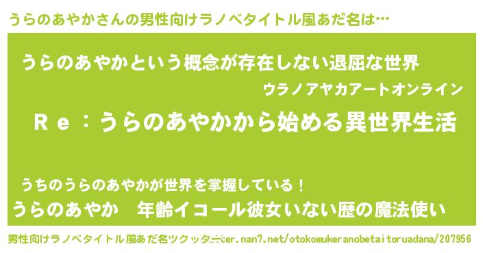 | 肩書あだ名 | 『うらのあやか閣下』『うらのあやか先生』 |