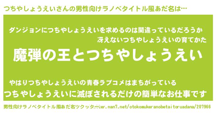 | 意味不明あだ名 | 『住所不定無職つちやしょうえい(8歳)』 |