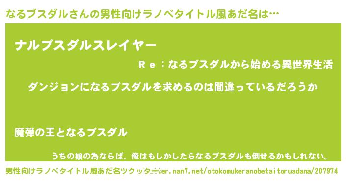| 女子向けラノベタイトル風あだ名 | 『なるブスダルは平凡を望む』 |