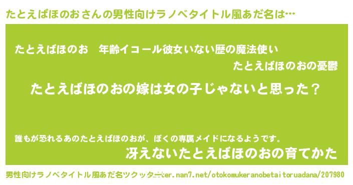 | 女子向けラノベタイトル風あだ名 | 『たとえばほのお様がみてる』 |