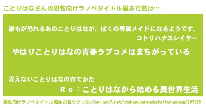 | 女子向けラノベタイトル風あだ名 | 『ことりはなの雑貨屋さん』 |