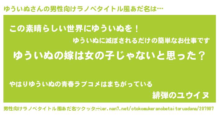 | 女子向けラノベタイトル風あだ名 | 『ゆういぬ様がみてる』 |