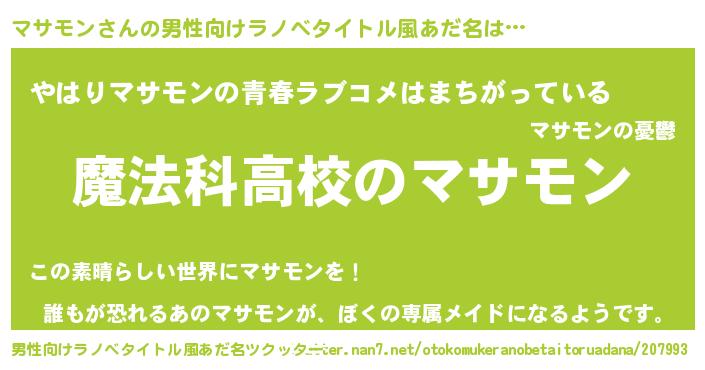 | 女子向けラノベタイトル風あだ名 | 『マサモンアンティーク』 |