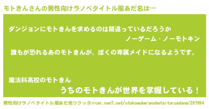 モトきんさんの男性向けラノベタイトル風あだ名をツクッター!