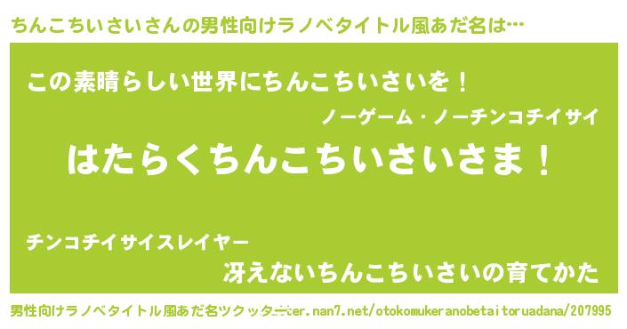| 意味不明あだ名 | 『住所不定無職ちんこちいさい(68歳)』 |