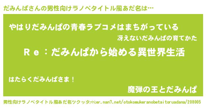 | 意味不明あだ名 | 『自称だみんぱ』『だみんぱフォーエバー』 |
