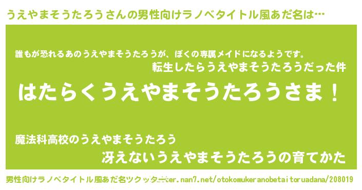 | 胡散臭い通販商品みたいなあだ名 | 『絶対に幸福をもたらす健康食品…その名も「うえやまそうたろう」』 |