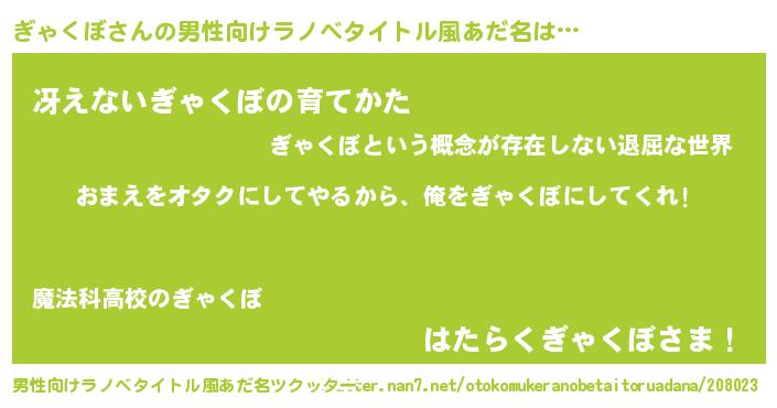 | 女子向けラノベタイトル風あだ名 | 『ぎゃくぼ夫妻のなれそめ』 |