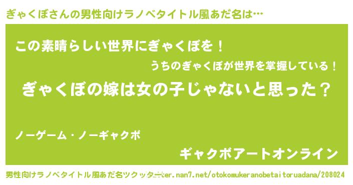 ぎゃくぼさんの男性向けラノベタイトル風あだ名をツクッター!