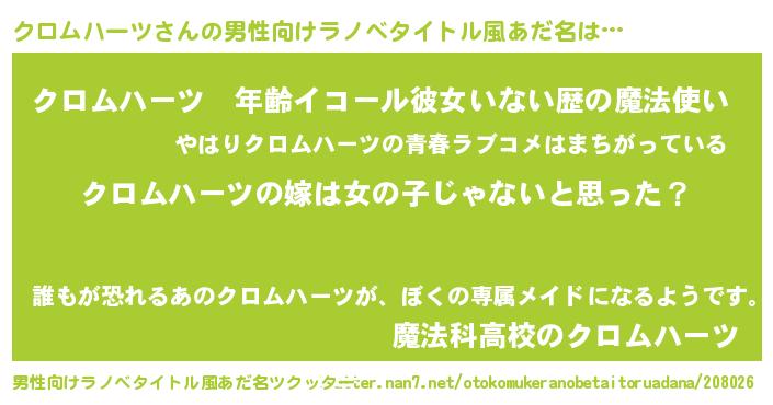 | ヒーロー風カッコイイあだ名 | 『炎刃騎士クロ』『最強戦士クロムハーツ』 |