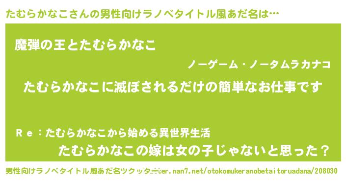 | 胡散臭い通販商品みたいなあだ名 | 『あなたにだけ特別に提供する100年もののヴィンテージワイン…その名も「たむらかなこ」』 |