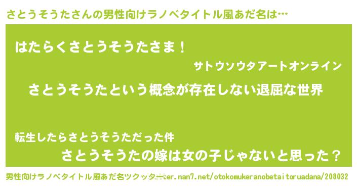 | 胡散臭い通販商品みたいなあだ名 | 『来世でも幸せになれる健康食品…その名も「さとうそうた」』 |