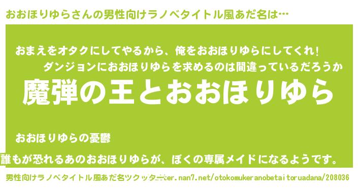 | 意味不明あだ名 | 『住所不定無職おおほりゆら(62歳)』 |