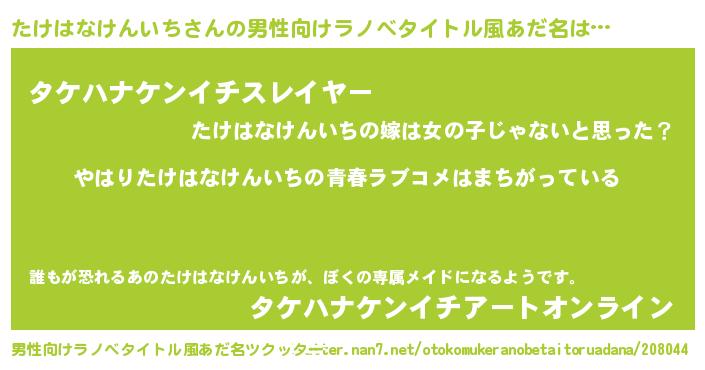 | 女子向けラノベタイトル風あだ名 | 『たけはなけんいちの雑貨屋さん』 |