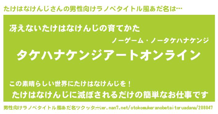 | 胡散臭い通販商品みたいなあだ名 | 『億万長者になれるブレスレット…その名も「たけはなけんじ」』 |