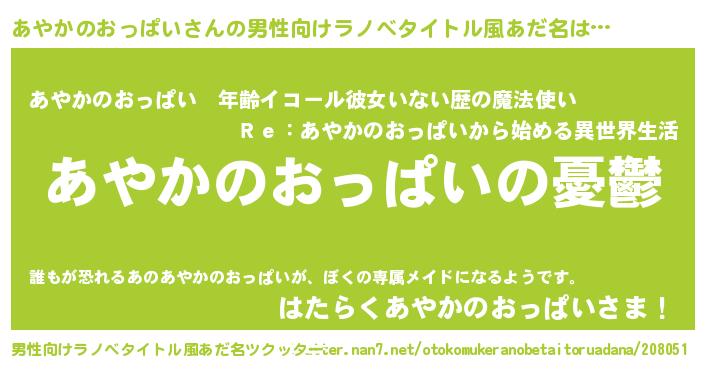 | 胡散臭い通販商品みたいなあだ名 | 『必ず成功する霊験あらたかなお札…その名も「あやかのおっぱい」』 |