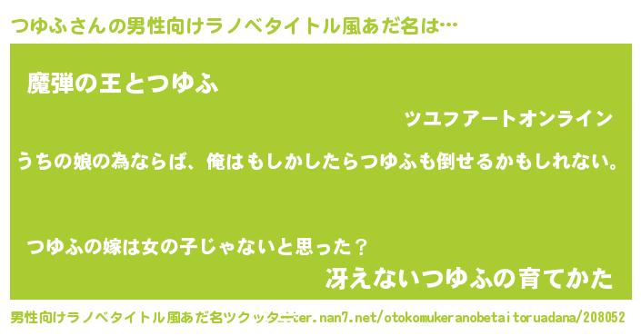 | 女子向けラノベタイトル風あだ名 | 『つゆふ伯爵の花嫁』『つゆふ様がみてる』 |
