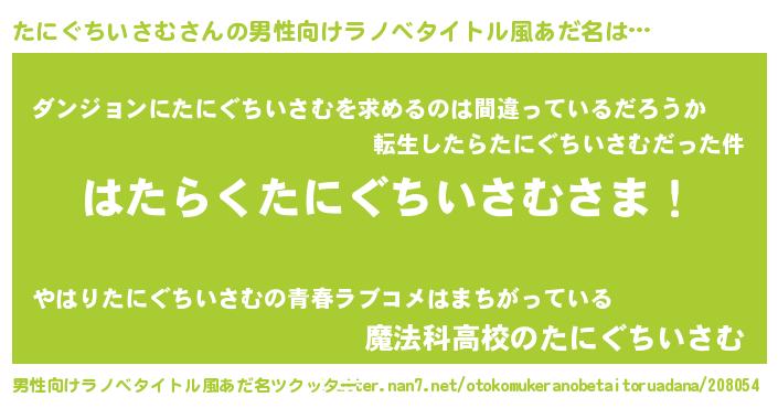 | ピコ太郎風あだ名 | 『タニ史郎』『ピタ四郎』『タタ太郎』 |