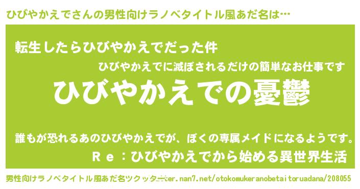 | 胡散臭い通販商品みたいなあだ名 | 『必ず成功する水晶球…その名も「ひびやかえで」』 |