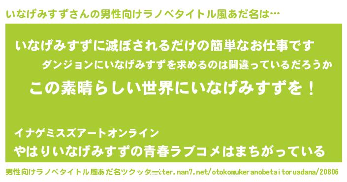 | 女子向けラノベタイトル風あだ名 | 『悪役いなげみすずに転生したようですが、知った事ではありません』 |