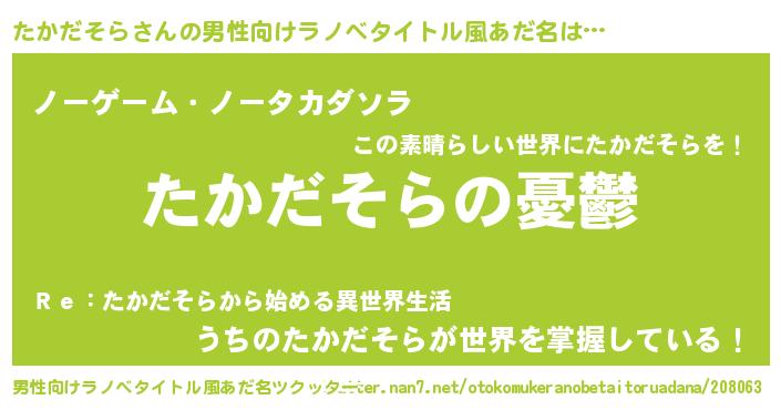 | 胡散臭い通販商品みたいなあだ名 | 『必ず成功する霊験あらたかなお札…その名も「たかだそら」』 |