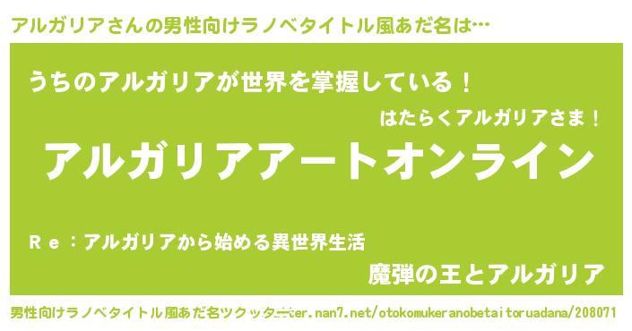 | 胡散臭い通販商品みたいなあだ名 | 『億万長者になれる水晶球…その名も「アルガリア」』 |