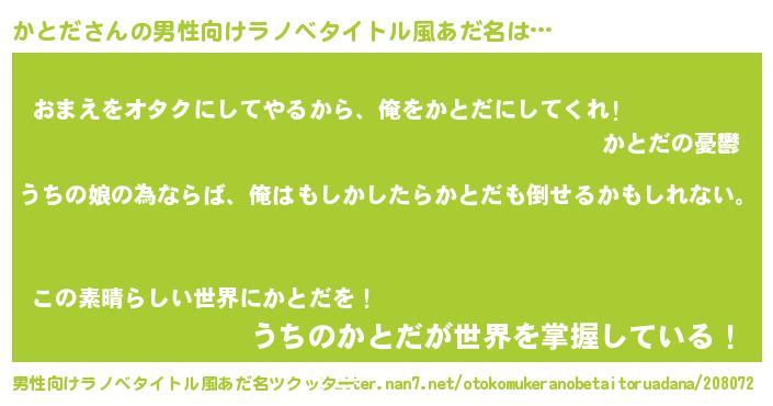 かとださんの男性向けラノベタイトル風あだ名をツクッター!