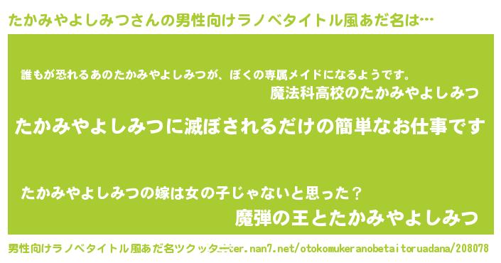 | 意味不明あだ名 | 『永久保存たかみやよしみつ』 |