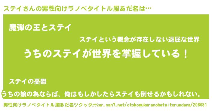 | 意味不明あだ名 | 『住所不定無職ステイ(71歳)』 |