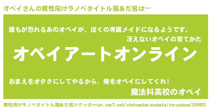 | ヘコむあだ名 | 『オベにー』『オベイ(爆)』『オベを』 |
