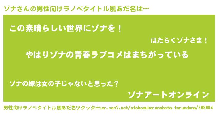 | ファンタジー風あだ名 | 『エターナルゾナー』『ヴァルゾナーナ』 |
