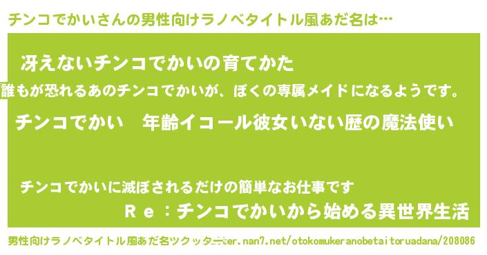 | 女子向けラノベタイトル風あだ名 | 『チンコでかいの玉の輿計画!』 |