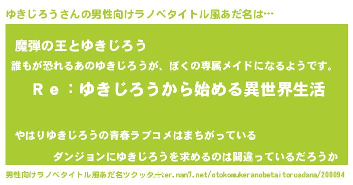 | 意味不明あだ名 | 『自称ゆきじろう』『永久保存ゆきじろう』 |