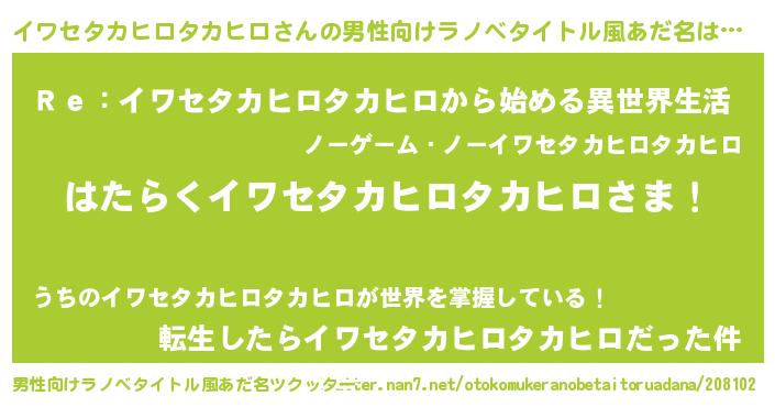 | 女子向けラノベタイトル風あだ名 | 『首の姫と首なしイワセタカヒロタカヒロ』 |