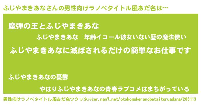 | 胡散臭い通販商品みたいなあだ名 | 『あなたにだけ特別に提供する世界で10本だけ現存している希少なブランデー…その名も「ふじやまきあな」』 |
