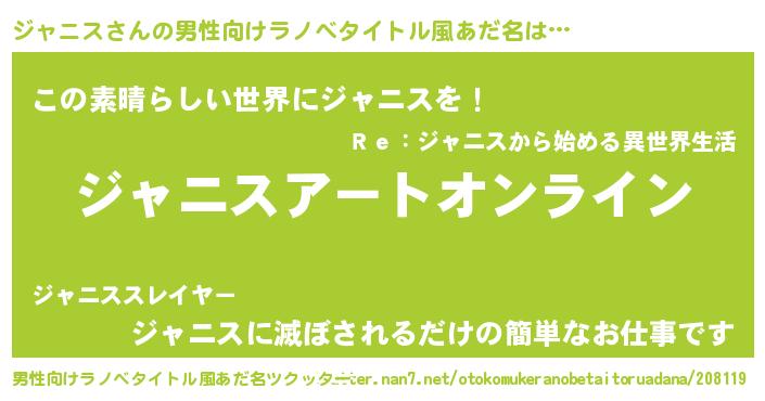 | 女子向けラノベタイトル風あだ名 | 『ジャニス姫と円卓の騎士』 |