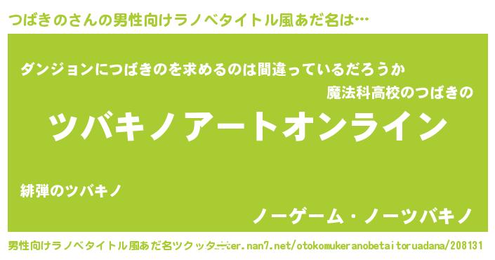 | ヒーロー風カッコイイあだ名 | 『スーパーツバキノ』『暗黒騎士ツバ』 |
