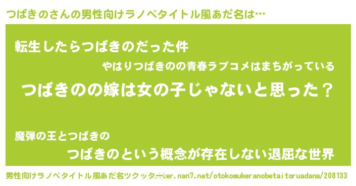 | 女子向けラノベタイトル風あだ名 | 『つばきのの卵を拾いまして』 |