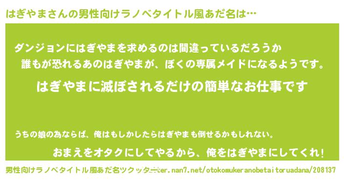 | 胡散臭い通販商品みたいなあだ名 | 『伝統あるサプリメント…その名も「はぎやま」』 |