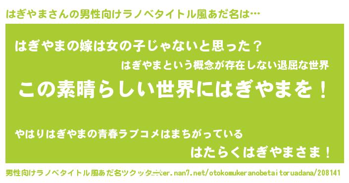 はぎやまさんの男性向けラノベタイトル風あだ名をツクッター!