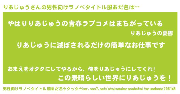| 意味不明あだ名 | 『りあじゅうフォーエバー』 |