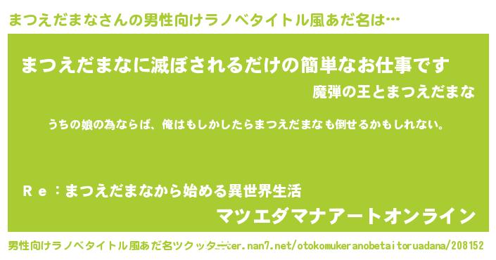 | 女子向けラノベタイトル風あだ名 | 『まつえだまなの婚約者』 |