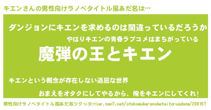 | 女子向けラノベタイトル風あだ名 | 『キエンが死なない童話 林檎のキエンの診療簿』 |