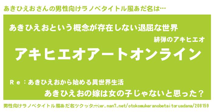 あきひえおさんの男性向けラノベタイトル風あだ名をツクッター!