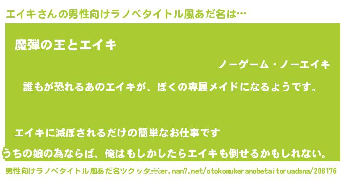 | ヘコむあだ名 | 『エイキ(遠い目)』『牛乳』『エイお』 |