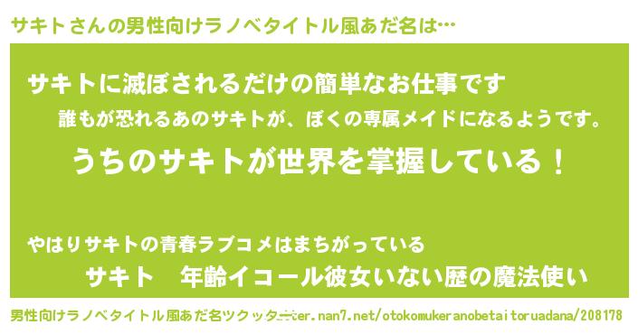| ヒーロー風カッコイイあだ名 | 『ネオサキト』『ウルトラサキトマン』 |