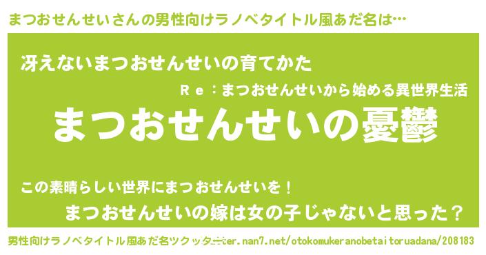 | 女子向けラノベタイトル風あだ名 | 『(仮)まつおせんせいのやんごとなき事情』 |