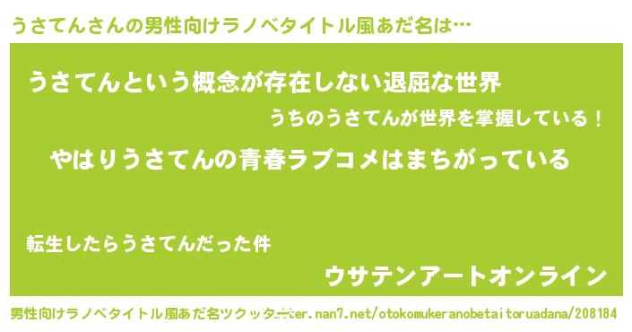 | ヒーロー風カッコイイあだ名 | 『ウルトラうさてんマン』『ネオウサテン』 |