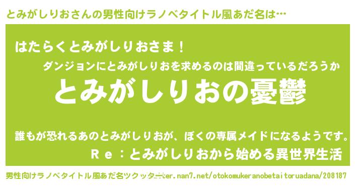 | 胡散臭い通販商品みたいなあだ名 | 『モテモテ間違いなし霊験あらたかなお札…その名も「とみがしりお」』 |