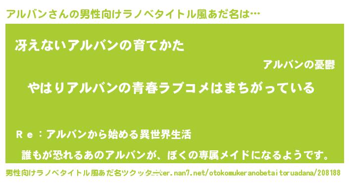 | ヘコむあだ名 | 『豆乳』『アルバン(爆)』『アルにー』 |